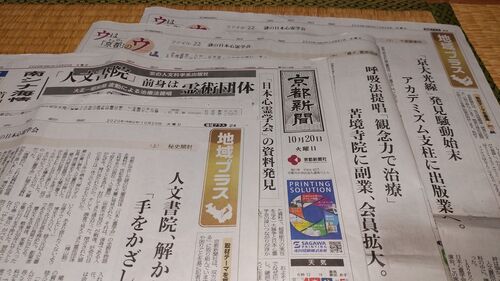 10月20日の京都新聞第1面に驚いた人も多いだろう。「『人文書院』前身は霊術団体」とか「『日本心霊学会』の資料発見」というおどろおどろしい見出しが躍る。お馴染みの樺山聡記者の記事である。日本心霊学会の資料が人文書院から見つかったこと自体は既報である…