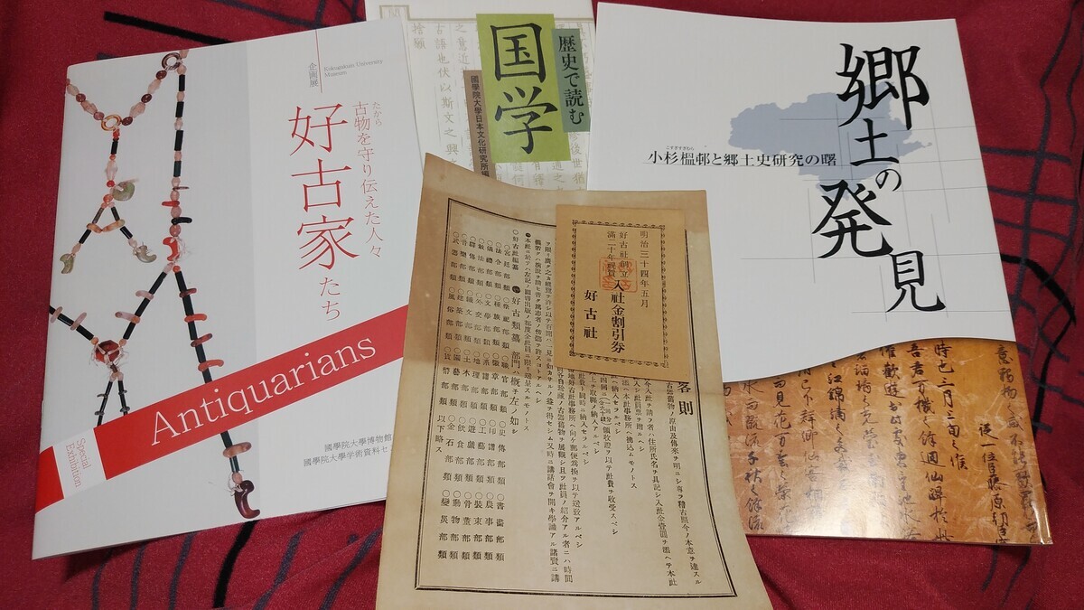 昨年刊行された國學院大學日本文化研究所編『歴史で読む国学』(ぺりかん社、令和4年3月)のコラム「国学への新しいまなざし」に「モノと国学者」(古畑侑亮)が立項され、「福羽美静が立ち上げた好古社では、学問を異にする様々な人物が集ってモノを考証し合い、その成果を雑誌として頒布するなど、各地の国学者がつながる場となっていった」と好古社が登場している。國學院大學博物館で令和2年に開催された企画展「古物(たから)を守り伝えた人々:好古家たち Antiquarians」には好古社は出てこなかったが、いつか展覧会で取り上げてくれるかもしれない。